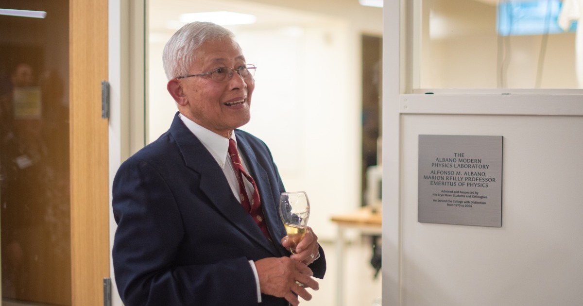 Alumnae, students, colleagues, friends and family gathered in the newly renovated Park Science Center on October 27, 2018, to celebrate Alfonso Albano, Marion Reilly Professor Emeritus of Physics.