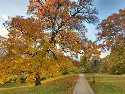 This suggests, correctly, that Bertrand Russell was a fan of Bryn Mawr. He described the students he met during his 1896 visit as superior to the women he had known at Cambridge. After that visit, Russell had given his geometrical lectures at Johns Hopkins but chose not to repeat them on other U.S. campuses because, as Alys put it, "Bertie...feels that Johns Hopkins and Bryn Mawr are the best." (Take that, Harvard!) Through his friendship with Lucy Donnelly, he met her roommate, Edith Finch of the BMC Class of 1922, who became his (fourth) wife in 1952. And, at a period when his life was especially turbulent, he wrote wistfully to Lucy that "I can still see in my mind's eye the beauty of Bryn Mawr in autumn."
