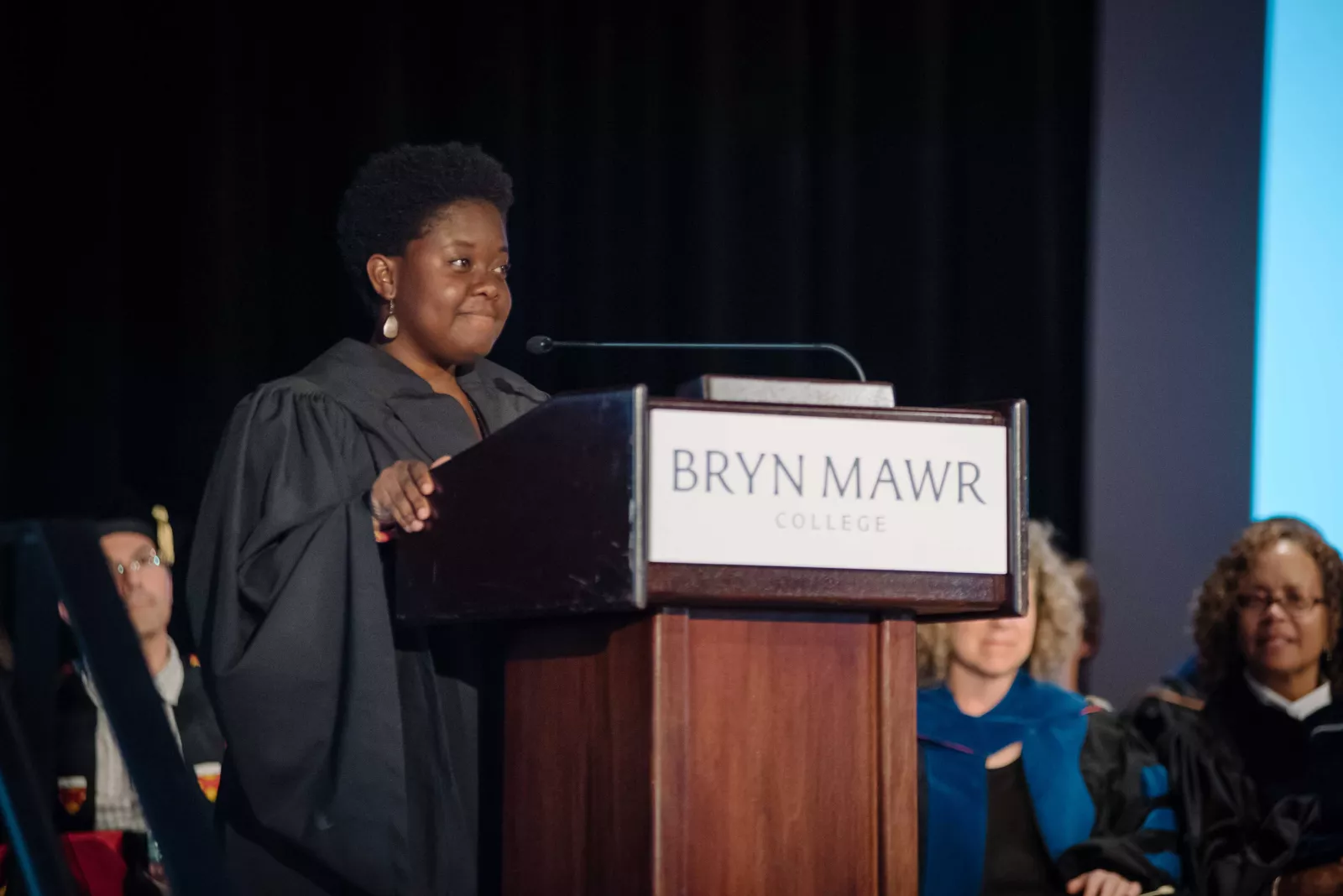 "I like to think that I have always been surrounded by brilliant people in my life, but never was that fact as clear as it is today when I look into your faces. You are all brimming with so much intelligence and zeal that it is impossible not to feel excited for the lives that you will touch with your brilliance. At some point, or at many points in this academic year, you will doubt a lot of the good things that you believe of yourself and that’s ok. You might start to feel small at the prospect of navigating life outside of these walls and away from the care of our beloved community, and that too is okay. But I want you to envision this, every time you feel that way; you are a Bryn Mawr scholar and the minute you enrolled into this community was the minute you started to cultivate the fire in you."