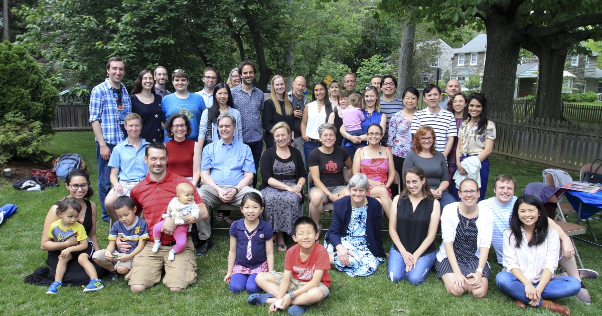 Among the many festivities at the 2017 Reunion Weekend was a gathering of generations of Mawrters and their family members who came together at the home of Associate Professor of Physics May Cheng to bid well wishes to Professor of Physics Peter Beckmann.