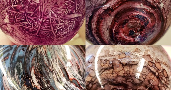 After evaporating the solvent from reaction flasks, Cassie Gates found these designs that looked like the clouds on gaseous planets. The swirling designs are the result of stirring bars whipping solvent around as it bubbled up the flasks’ sides while under vacuum.