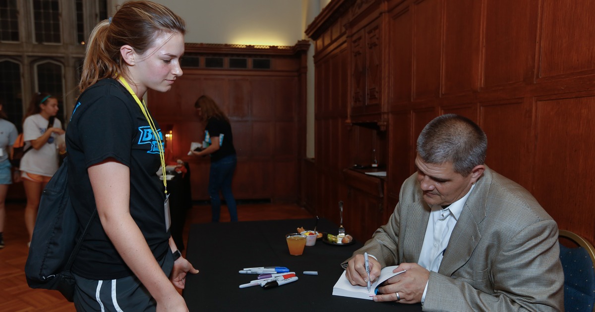 Conceived as a complement to the Balch seminar curriculum, the speaker series brings together the entire freshman class for a conversation with an author whose work they may just have encountered in class. The format—a formal lecture followed by an informal conversation and an even more informal dessert reception—provides the perfect combination of intellectual engagement, excitement, and fun.