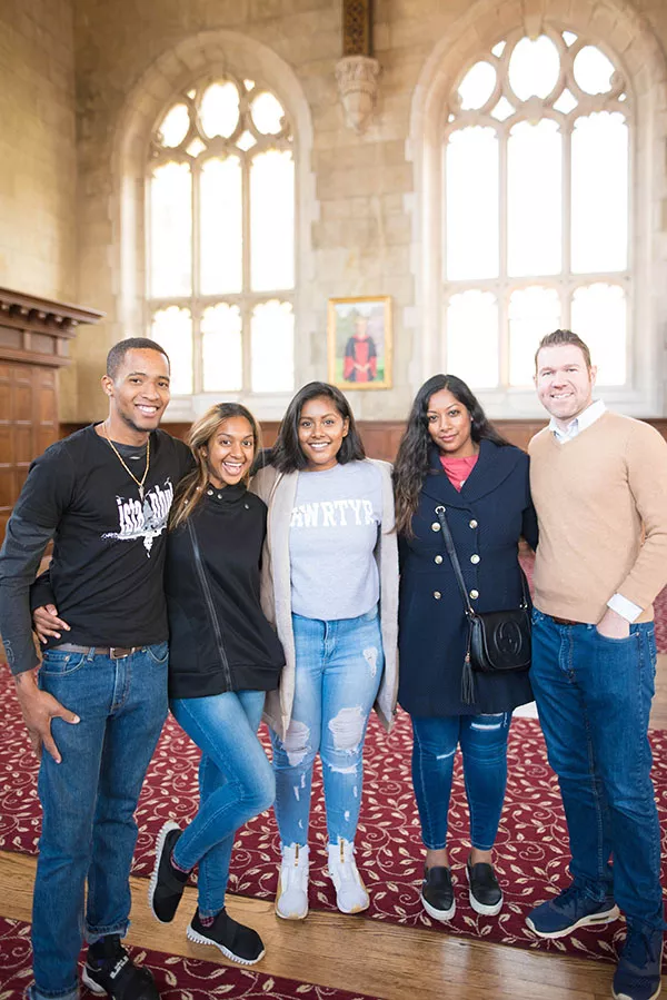 After a reception with President Kim Cassidy and Dean of the Undergraduate College Jennifer Walters, Mawrters and their guests had dinner in the dining halls. The night ended with opportunities to take in a movie, watch the Shakespeare Performance Troupe perform A Winter's Tale, or enjoy a sing through of the score of the fall theater production of Riot Antigone. Those looking to be a part of the action joined Bi-Co Latin Dance Troupe Pulso Latino for a night of dancing or the Art Club for a hands-on sampling of the crafts taught during their Community Art Nights.