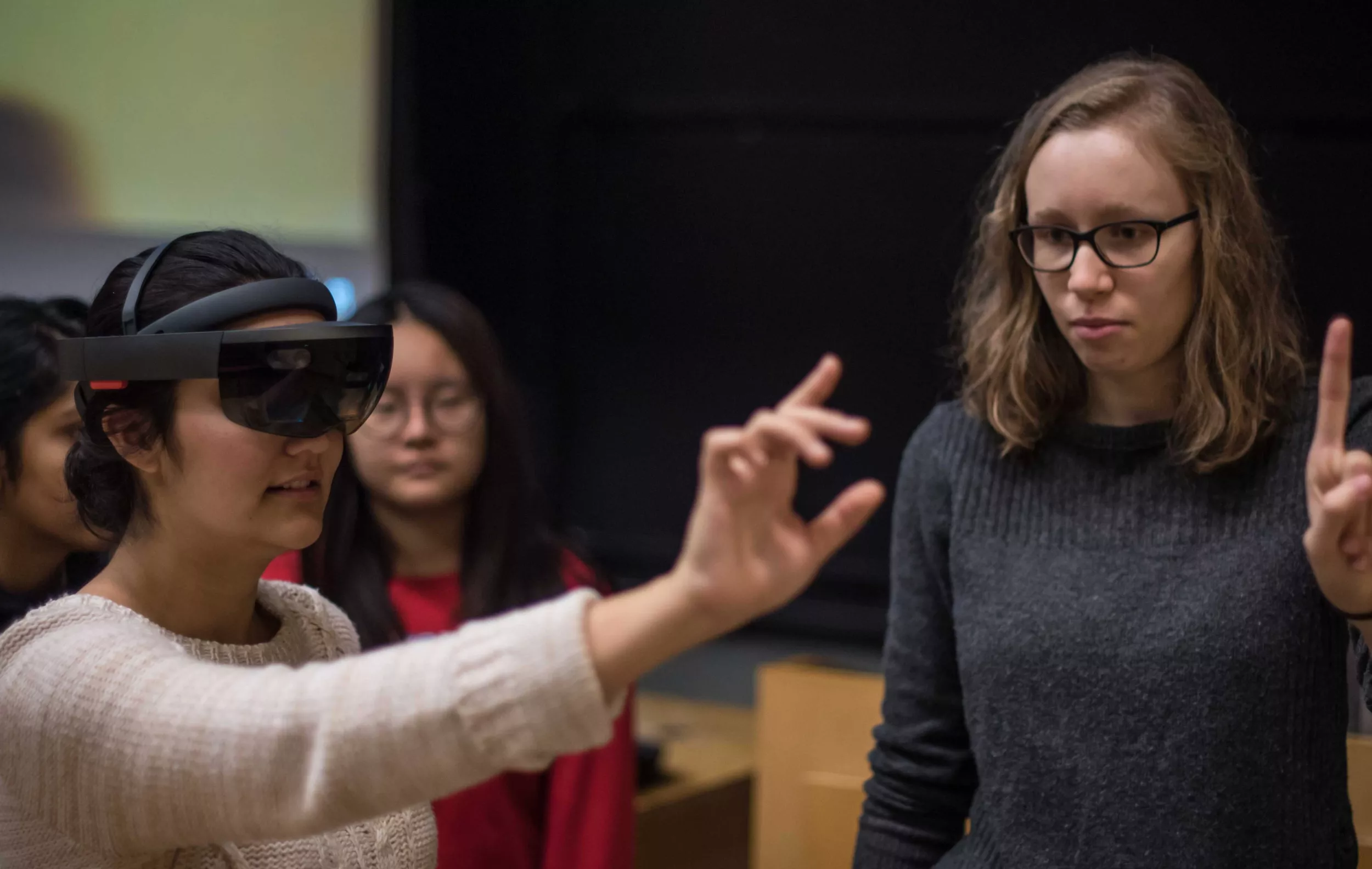 The week’s on-campus activities included workshops on working with the audio editing software Audacity; a science cartooning workshop led by local artist Eleanor Evans, and a chance to try out Bryn Mawr’s three sets of HoloLenses.