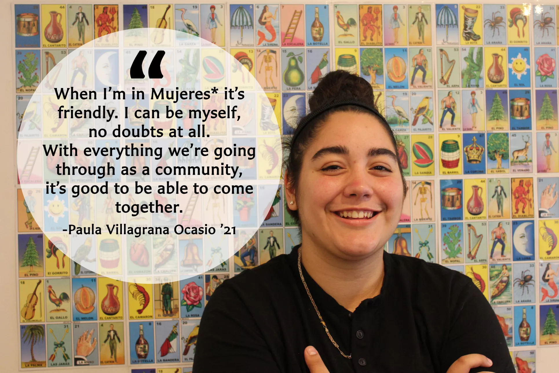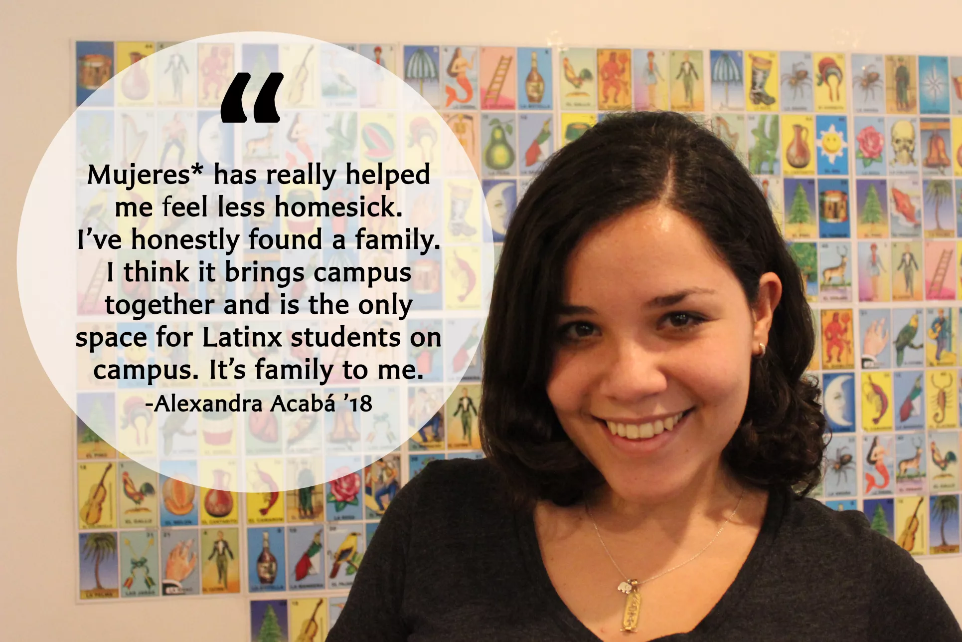 Student-run clubs and organizations are at the heart of Bryn Mawr's on-campus community. Click on the thumbnails below to read what members of Mujeres* have to say about the importance of the group in their life.